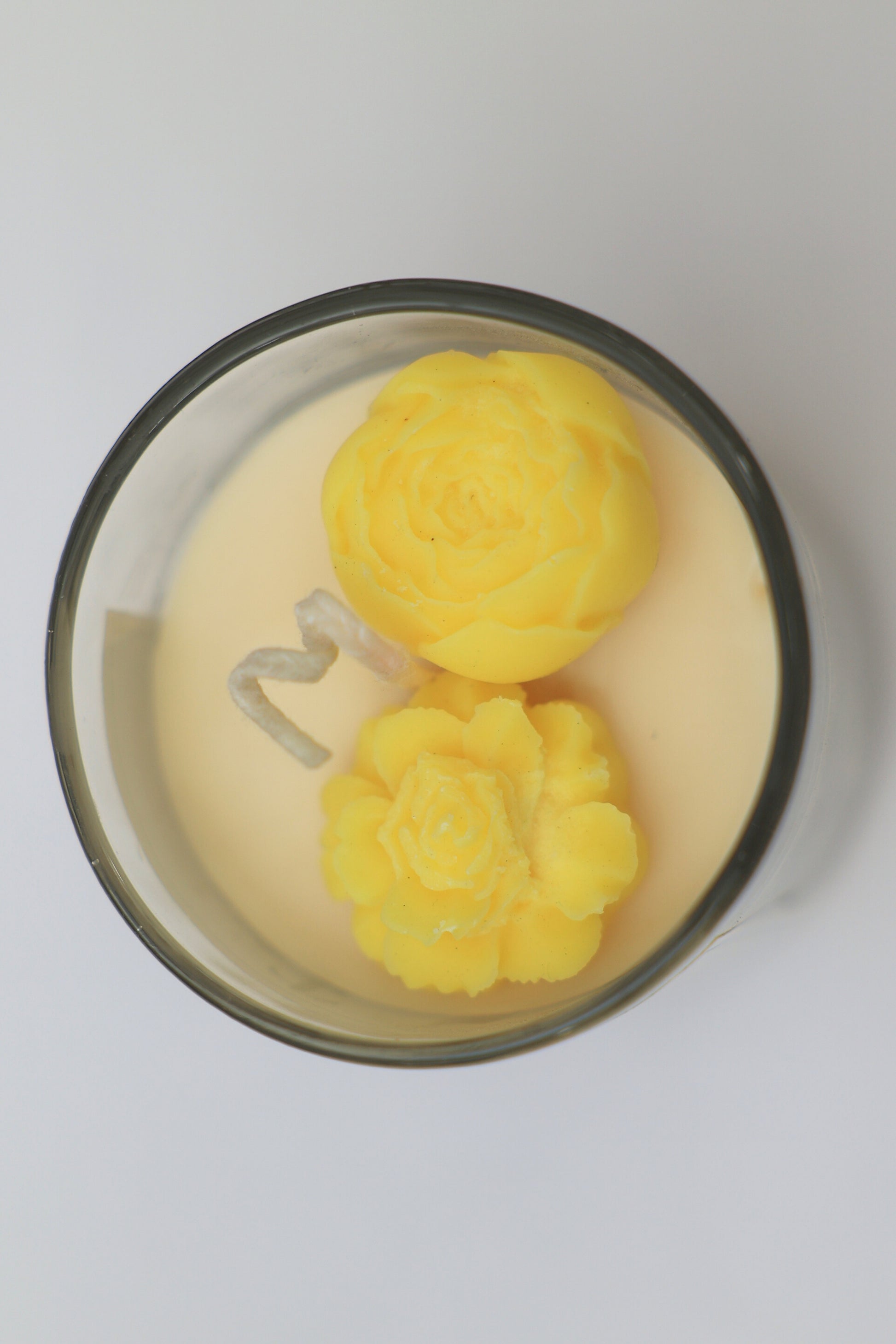 Hand-poured in elegant shades of white and yellow, this candle is a reminder to embrace clarity, confidence, and the glow of good vibes—every single day.