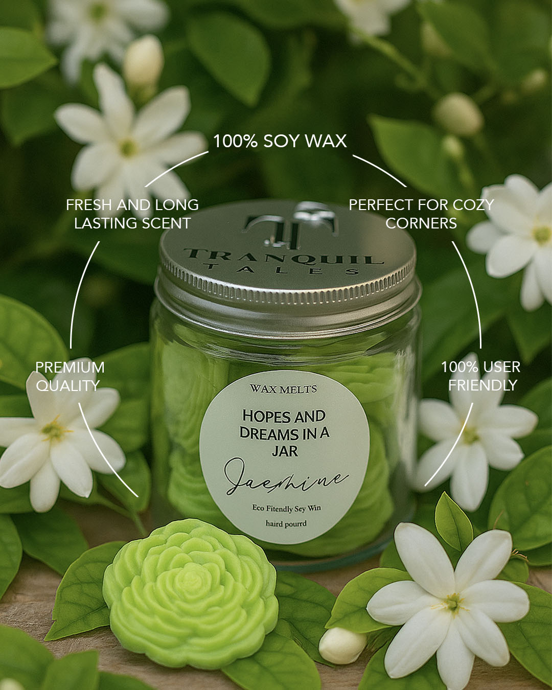 Let the intoxicating beauty of jasmine fill your space with soft, sensual charm. Our Jasmine Wax Melts release a rich, floral aroma that’s both soothing and uplifting—like a moonlit garden in full bloom. It’s the perfect scent to create a peaceful atmosphere with just a touch of romance.